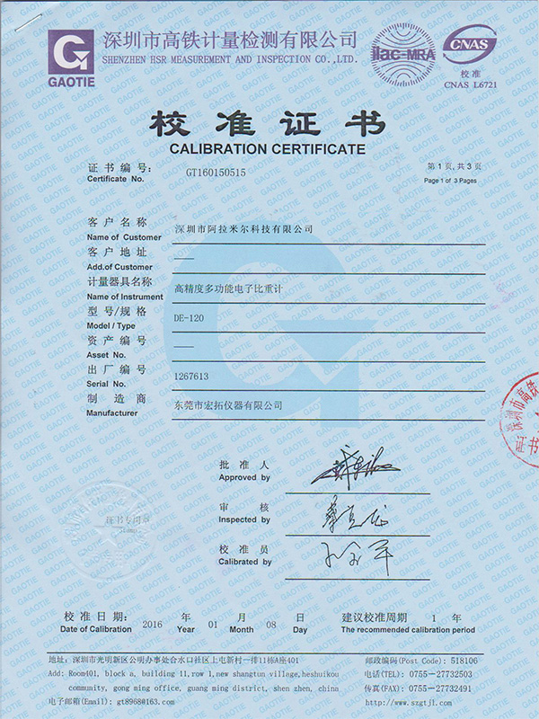 密度計校準證書
