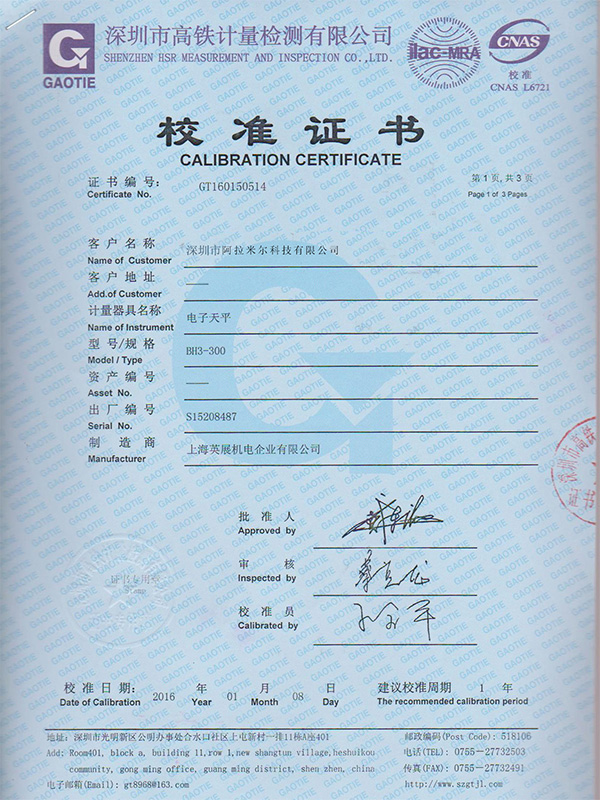 電子天平校準證書